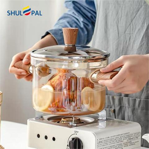 Groothandel Hoge Borosilicaatglas Kookgerei Glas Soep & Voorraad Pot Met Dubbele Handvat En Deksel